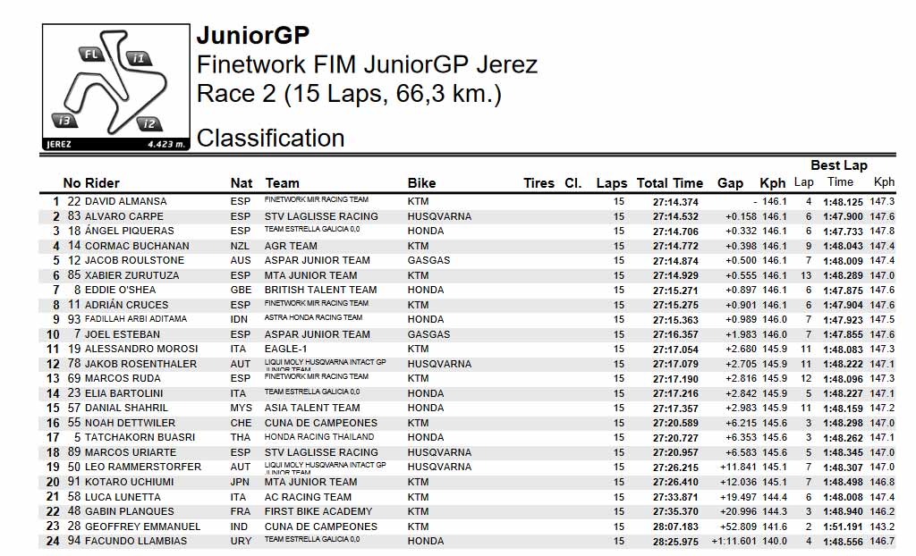 liputanindo.com – Seperti sudah liputanindo kabarkan sebelumnya Awal race weekend Jerez JuniorGP Junior World-Championship 2023 Buat pembalap Muda Indonesia Fadilah Arbi Aditama tidaklah Mudah. Ia Harus mengikuti Q1 dan hanya memperoleh Posisi Start Grid Ke 18 alias Row ke 7 sebagai pembalap Padepokan Junior Talent Terbawah dalam Grid Start.