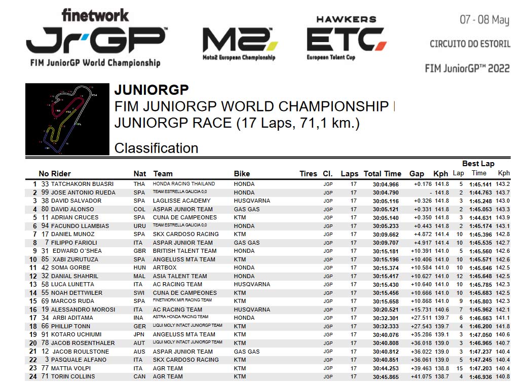 Kejuaraan dunia Finetwork FIM JuniorGP 2022 menyambut awal musim baru Kepada tim junior, karena Segala pembalap Ingin Membikin awal yang kuat Kepada sebuah kampanye baru. Itu adalah hari yang harus diingat, dengan Tatchakorn Buasri (Honda Racing Thailand) meraih kemenangan pertama pada balapan pembuka musim ini.