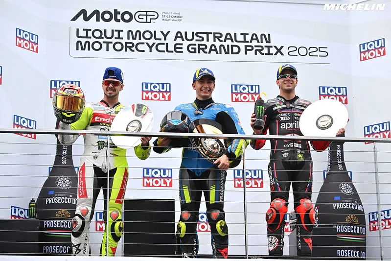 Fabio Di Giannantonio yang berhasil finis kedua Demi podium ketiganya di GP tahun ini, Berbarengan dengan P3-nya di GP Amerika di CoTA Austin dan juga GP Italia di Mugello, yang menjadikan tahun 2025 musim MotoGP terbaiknya dalam hal peraihan podium. Ini adalah podium MotoGP keduanya di Phillip Island, Berbarengan dengan P3 di tahun 2023 sekaligus itu podium MotoGP pertamanya.