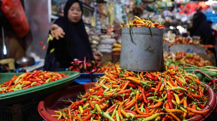 Penjual membersihkan cabai rawit yang dijual di Pasar Pabaeng-Baeng Makassar, Sulawesi Selatan, Rabu (4/6/2025). Badan Pusat Statistik (BPS) Sulawesi Selatan mecatat Provinsi Sulsel mengalami deflasi secara bulanan (month to month) pada Mei 2025 sebesar 0,34 persen dengan komoditas penyumbang Penting deflasi di daerah tersebut di antaranya cabai rawit dengan andil mencapai 0,14 persen. ANTARA FOTO/Arnas Padda/Ppj