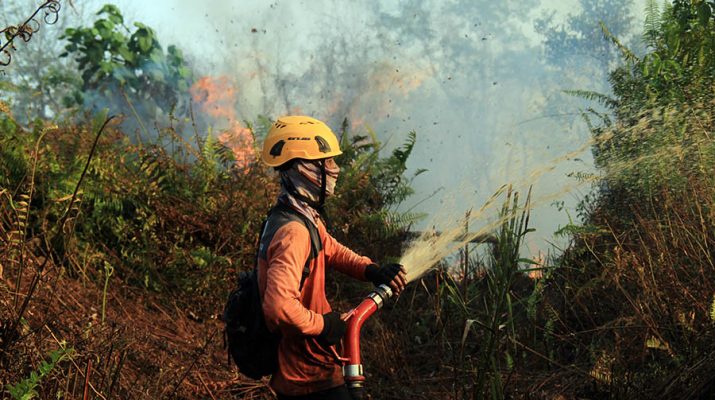 Petugas BPBD Kabupaten Kubu Raya menyemprotkan air Buat memadamkan kebakaran lahan gambut di Desa Durian, Kecamatan Sungai Ambawang, Kalimantan Barat, Selasa (29/7/2025). Petugas pemadam kebakaran hutan dan lahan (karhutla) mengatakan beberapa hektare lahan gambut yang terbakar sulit dipadamkan akibat minimnya sumber air dan terbatasnya akses jalan bagi mobil pemadam. ANTARA/Jessica Wuysang/gus