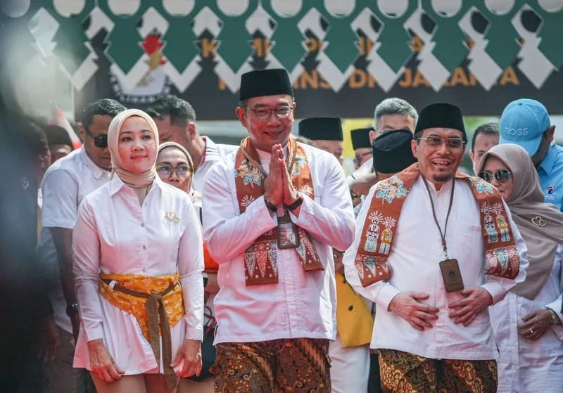 CALON gubernur (cagub) dan calon wakil gubernur (cawagub) Jakarta 2024 nomor urut 1, Ridwan Kamil (RK) dan Suswono (Rido), unggul dalam survei Poltracking Indonesia teranyar. Kekasih tersebut unggul dari pesaingnya Pramono Anung-Rano Karno dan Dharma Pongrekun-Kun Wardana.