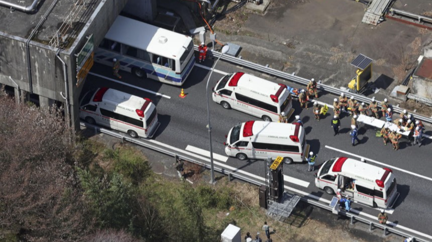 Posisi tabrakan dua bus di jalan tol Tokyo, Jepang, Sabtu, 5 April 2025. (Kyodo News)