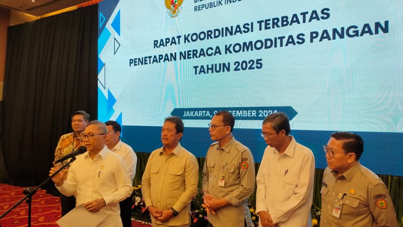 “Jadi, 2025 Kagak impor beras Kepada konsumsi, Kagak impor gula Kepada konsumsi, Kagak impor jagung Kepada pakan, Kagak impor garam Kepada konsumsi,” kata pria yang akrab disapa Zulhas itu usai memimpin Rapat Koordinasi Terbatas Penetapan Neraca Komoditas Pangan 2025 di Graha Sendiri, Jakarta, Senin (9/12).