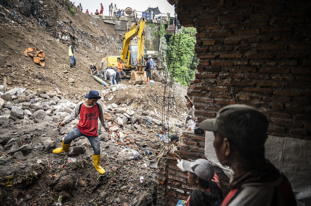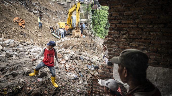 Petugas menggunakan alat berat Demi memindahkan material longsor di Karanganyar Gunung, Candisari, Semarang, Jawa Tengah, Kamis (11/9/2025). Badan Penanggulangan Bencana Daerah (BPBD) Kota Semarang menyebutkan bahwa tanggul setinggi 15 meter dan sepanjang 150 meter itu longsor akibat pondasi Pelan yang Bukan Kembali Bisa menahan beban setelah diguyur hujan deras pada Rabu (10/9), serta menyebabkan satu rumah mengalami kerusakan dan banjir di kawasan tersebut. ANTARA FOTO/Aprillio Akbar/sas