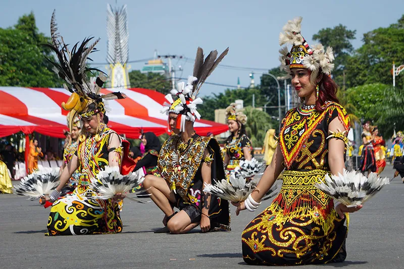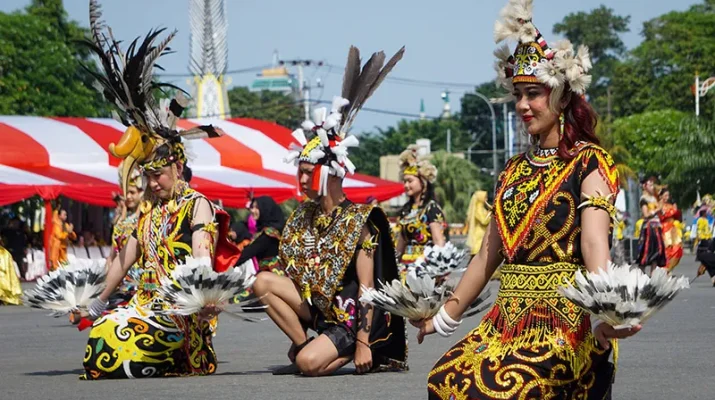 Sejumlah pelajar membawakan tarian kolosal Ketika perayaan Hari Jadi ke-128 Kota Balikpapan di Balikpapan, Kalimantan Timur, Senin (10/2/2025). Tari kolosal bertemakan Harmony of Balikpapan yang melibatkan 1.128 pelajar tersebut membawa pesan kota Balikpapan menjunjung tinggi persatuan dan menjadi kota yang heterogen. ANTARA/Aditya Nugroho/gus