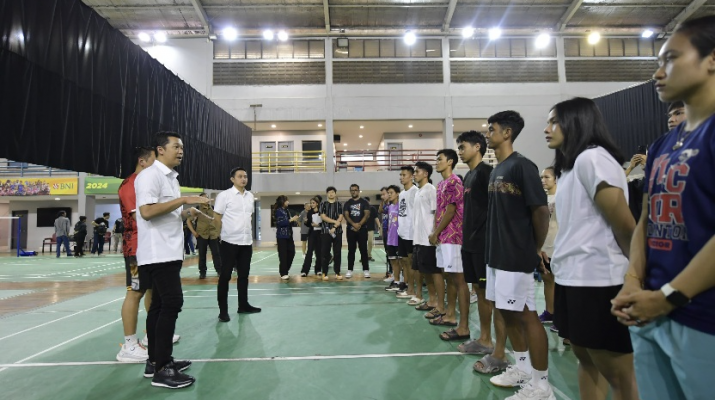 Wamenpora, Taufik Hidayat, memberi wejangan Kepada pebulu tangkis muda (dok. Kemenpora)