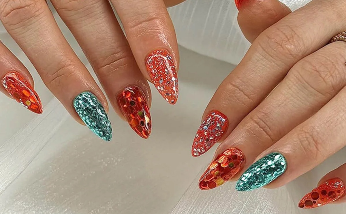 Para manicurist menyebut tren Showgirl ini mengedepankan nuansa glamor. Dengan kombinasi oranye terang, biru lembut, hingga peach berpadu dengan sentuhan emas, perak, glitter, ombré, dan aura fade.