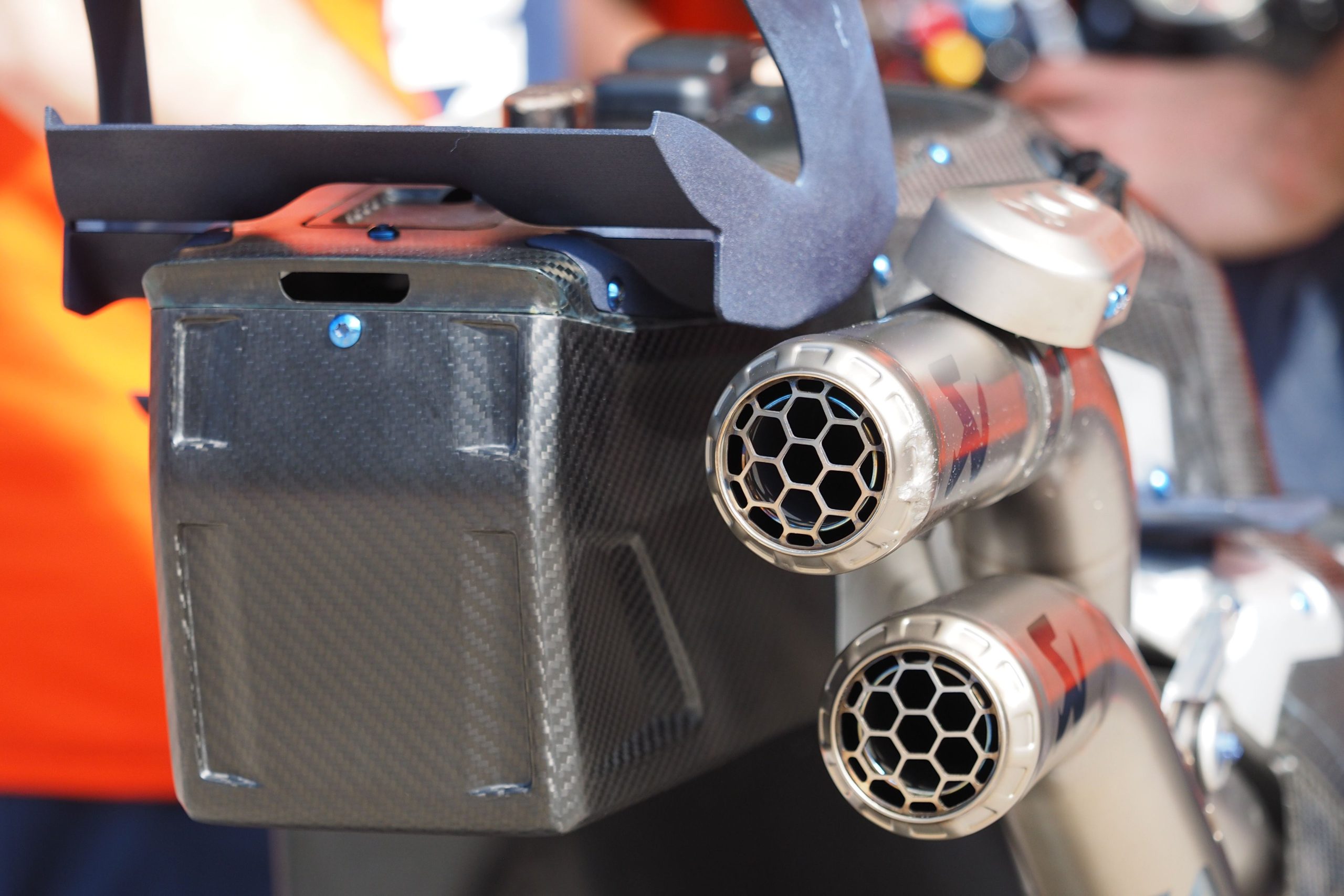 Diperkirakan KTM telah mendesain bentuk boxy dari bagian buritan dari RC16 selain sebagai tempat Buat menempatkan beberapa parts elektronik, juga sebagai tempat mass damper Bagus itu mungkin model statik dengan ballast maupun agak sedikit semi-active dengan alat mirip J-Damper yang pada dasarnya di Formula 1, J-Damper sudah di-banned mulai 2022 di Rendah regulasi budget cap. – @liputanindo