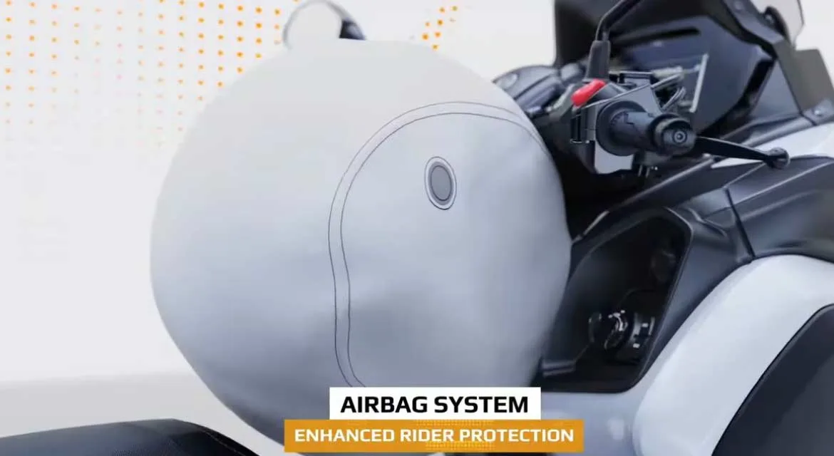 Sistemnya bekerja menggunakan sensor tabrakan yang sangat sensitif. Ketika sensor mendeteksi adanya benturan keras dari arah depan (frontal), dalam hitungan milidetik, kantong udara akan mengembang ke arah atas dan depan pengendara. Tujuannya Jernih: Demi meminimalisir benturan langsung tubuh pengendara (terutama area dada dan kepala) ke objek di depan atau meminimalisir pengendara terpental jauh dari motor.