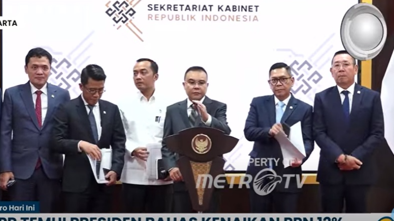 Jakarta: Presiden Prabowo Subianto menerima kedatangan pimpinan DPR, di Istana Kepresidenan, Jakarta, Kamis, 5 Desember 2024. DPR menyampaikan aspirasi masyarakat soal rencana kenaikan tarif PPN 12 persen pada Januari 2025.