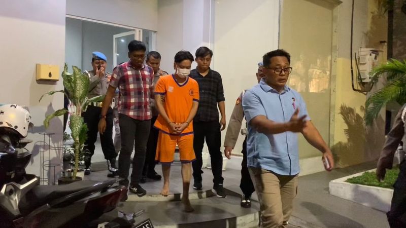 Usai diperiksa, sekira pukul 21.00 WIB tampak Ivan memakai baju tahanan berwarna oranya, tangannya dibelenggu borgol, dia berjalan tanpa alas kaki, sedangkan wajahnya tertutup masker.