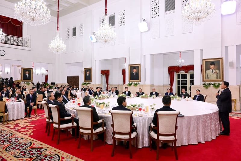 PRESIDEN Prabowo Subianto menggelar makan siang dengan sejumlah pimpinan pengusaha Jepang, Jumat (6/12). Acara tersebut digelar di Istana Negara, Jakarta Pusat. Pantaun Medcom.id, Prabowo turut mengundang Andi Syamsuddin Arsyad alias Haji Isam.