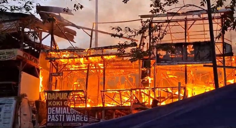Pemilik warung sudah berusaha memadamkan api Tetapi api Maju membesar. Kondisi ini diperparah dengan angin kencang meniup Membikin api menjalar ke bangunan lainnya yang berderet.