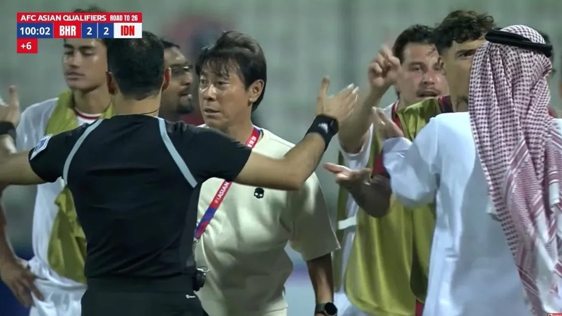 Liputanindo.id – Instruktur Shin Tae-yong melakukan protes keras atas kepemiminan wasit Oman saat Indonesia ditahan imbang Bahrain 2-2, dalam lanjutan Kualifikasi Piala Dunia 2026, Kamis (10/10/2024) malam. Gol penyama kedudukan Bahrain terjadi pada menit ke-99 padahal waktu tambahan hanya enam menit.