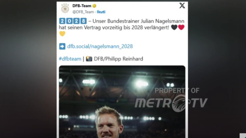 Federasi sepak bola Jerman, DFB, pada Jumat sore, 24 Januari 2025, mengabarkan bahwa kontrak Nagelsmann diperpanjang selama tiga tahun, yakni hingga 2028. Awalnya eks juru taktik Munchen itu dikontrak Timnas Jerman hingga Piala Eropa 2024.