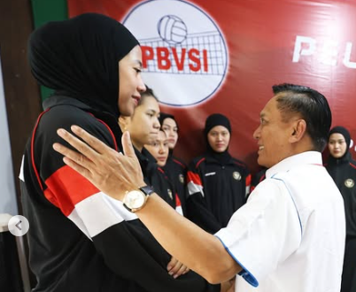 Pelepasan Timnas Senior oleh Ketua PP PBVSI Imam Sudjarwo dan atlet timnas voli putri Indonesia Megawati Hangestri(Instagram/@indonesian_volleyball)
