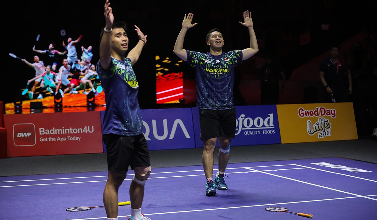 Sabar/Reza menang melawan wakil Amerika Perkumpulan, Chen Zhi Yi/Presley Smith dengan skor 21-9 dan 21-14 di Olympic Sports Center Gymnasium, Changzhou, pada Selasa (22/7).