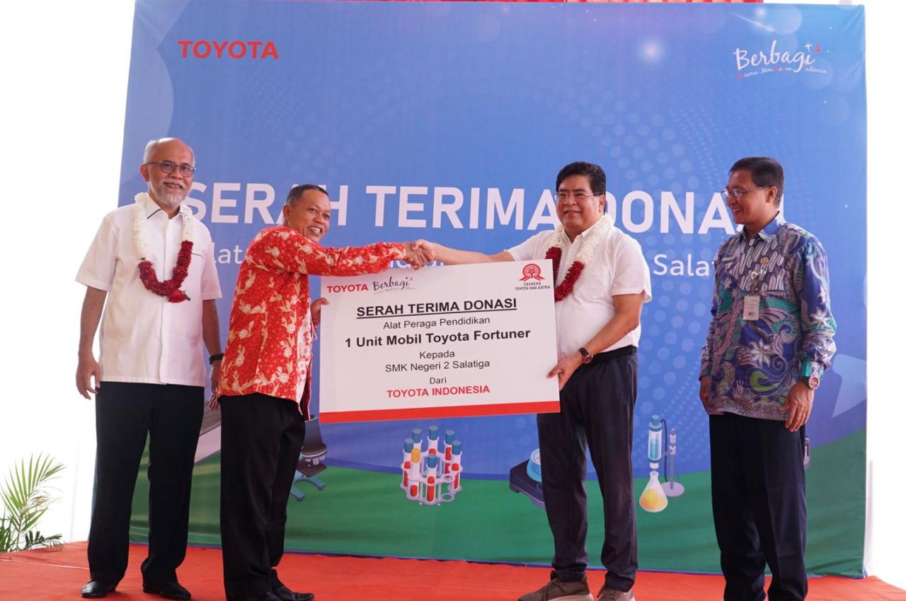 PT Toyota Motor Manufacturing Indonesia (TMMIN) kembali melanjutkan konsistensinya terhadap Penyelenggaraan program tanggung jawab sosial perusahaan (Corporate Social Responbility/CSR) di bidang pendidikan. Kali ini, Jumat, 11 April 2025, TMMIN menyerahkan secara langsung donasi berupa alat peraga pendidikan berupa 1 unit mobil Fortuner Kepada mendukung kegiatan praktik siswa Sekolah Menengah Kejuruan Negeri (SMKN) 2 Salatiga, Jawa Tengah, yang juga merupakan salah satu SMK binaan PT TMMIN.