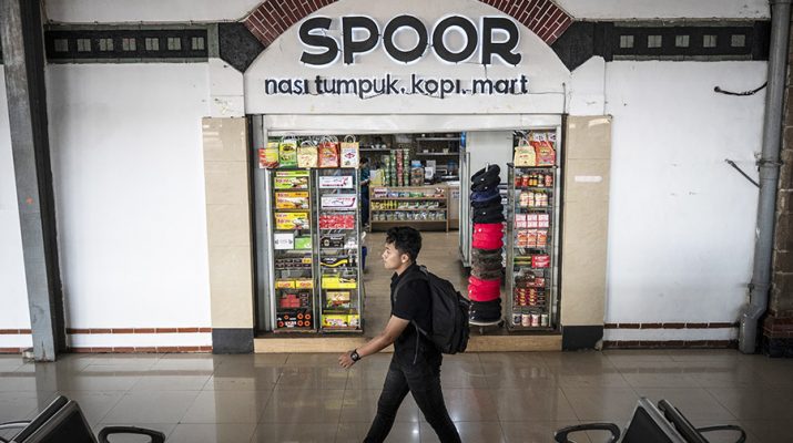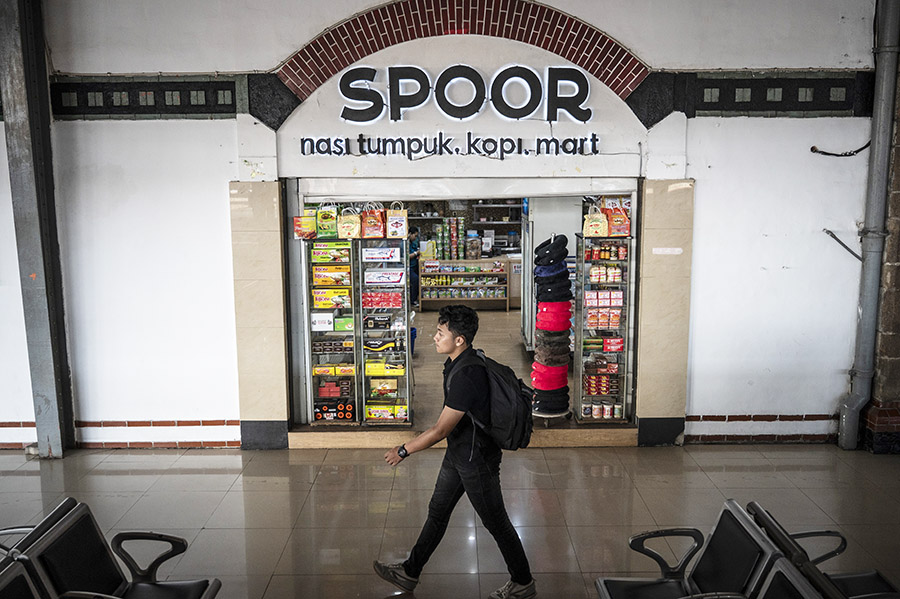 Calon penumpang berjalan di depan stan UMKM Stasiun Semarang Tawang, Semarang Utara, Semarang, Jawa Tengah, Senin (16/6/2025). Menteri UMKM Maman Abdurrahman menegaskan bahwa 30 persen ruang publik seperti stasiun, terminal, pelabuhan, jalan tol, rest area, dan bandara wajib dialokasikan Demi pelaku UMKM, guna menciptakan ekosistem UMKM yang inklusif dan berdaya saing, sesuai Peraturan Pemerintah (PP) Nomor 7 Tahun 2021 tentang Kemudahan, Pelindungan, dan Pemberdayaan Koperasi dan Usaha Mikro, Kecil, dan Menengah. ANTARA/Aprillio Akbar/gus