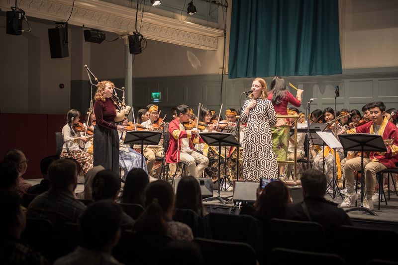 Orkestra komunitas remaja, di bawah pimpinan music director, Nathania Karina ini tampil bersama dua orang musisi lokal skotlandia. Di lagu bertajuk Highland Cathedral, mereka berkolaborasi dengan Ailis Sutheeland, seorang pemain alat musik tiup khas Skotlandia, bag piper.