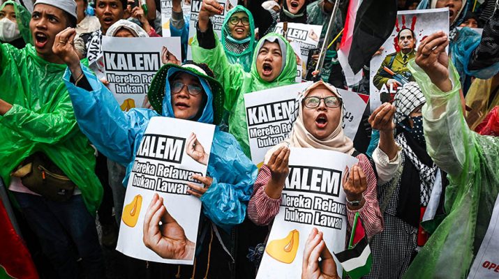 Sejumlah Penduduk membawa poster Begitu mengikuti aksi bela Palestina di depan Kedutaan Besar Mesir, Jakarta, Selasa (17/6/2025). Aksi solidaritas tersebut menuntut pemerintahan Mesir agar segera membuka jalur Rafah sebagai akses Esensial pengiriman Sokongan kemanusiaan ke Gaza, Palestina. ANTARA/Sulthony Hasanuddin/gus