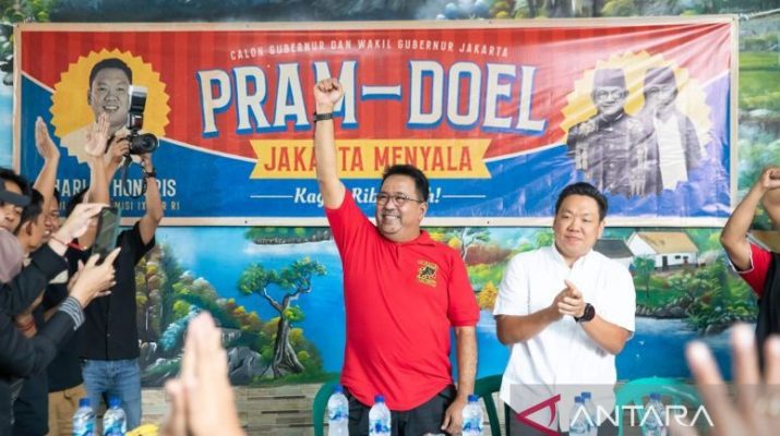 Pria yang akrab disapa “Si Doel” itu ditemani Bendahara Tim Pemenangan Pramono-Rano yang juga anggota DPR RI Charles Honoris.