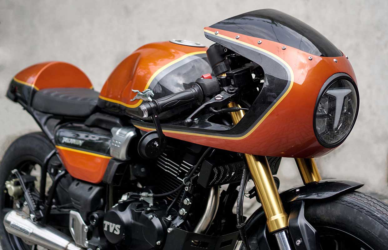 “Trend motor kultur, sangatlah ideal Buat TVS Ronin, itu sebabnya kami dari DM Work Motorcycle mencoba berkolaborasi, meminta ijin Buat membuatkan dan memperbanyak part “Plug and play” di TVS Ronin,” buka Yonatan Ricky selaku owner DM Work Motorcycle, ditemui disela-sela peluncuran varian modifikasi bergenre Café racer, Scrambler dan Bobber di Two Fat Monk Café, Renon, Denpasar (23/11).