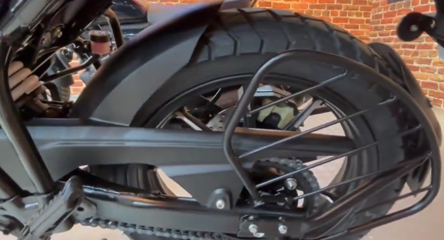 Salah satu detail yang paling terlihat dari siluet tersebut adalah area roda belakang. Pada TVS Ronin generasi pertama yang Begitu ini beredar, cover pelindung rantainya Mempunyai dimensi yang sangat besar dan menutup Nyaris seluruh bagian atas dan Rendah.