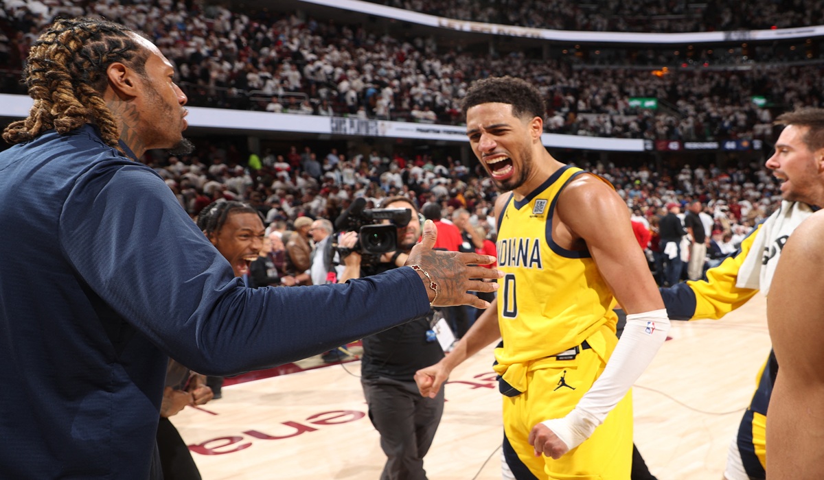TYRESE Haliburton mencetak tiga Bilangan dramatis Ketika waktu tersisa 1,1 detik Kepada membawa Indiana Pacers membalikkan keadaan dan mengalahkan Cleveland Cavaliers 120-119 di laga semifinal Kawasan Timur Playoff NBA di Cleveland, Rabu (7/5) WIB.