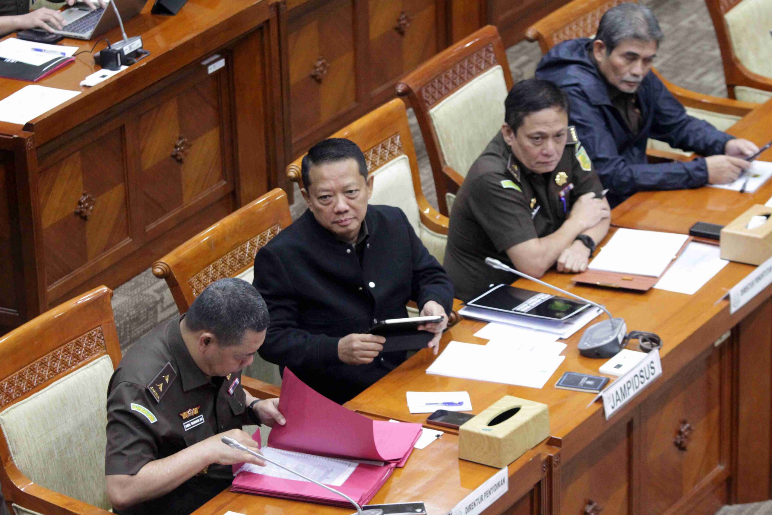 Jaksa Akbar Muda Tindak Pidana Spesifik (Jampidsus) Kejaksaan Akbar Febrie Ardiansyah (kanan) Begitu mengikuti Rapat Dengar Pendapat di Gedung Nusantara II, kompleks Perlemen Senayan, Jakarta, Rabu (5/3/2025). Rapat membahas update terkait penegakan hukum yang dilakukan oleh Kejaksaan diantaranya kasus impor gula, Pertamina, dan kasus timah. MI/Susanto/Ppj