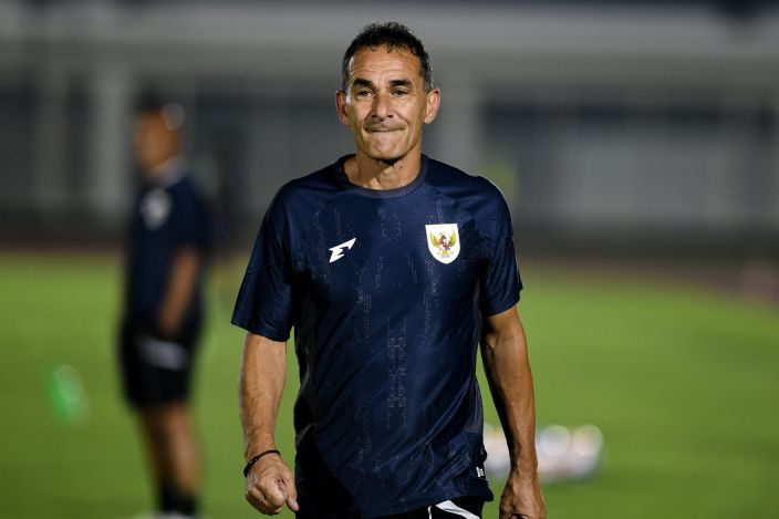 Instruktur Timnas U-23 Gerald Vanenburg memimpin jalannya latihan Timnas Indonesia U-23 jelang Piala AFF di Lapangan Madya, GBK, Jakarta, Senin (14/7/2025). Timnas Indonesia U-23 menggelar latihan jelang Piala AFF 2025. melawan Tim sepak bola Brunei Darussalam di Stadion Gelora Bung Karno, Selasa (15/7/2025). ANTARA FOTO/Muhammad Adimaja/foc. (ANTARA FOTO/MUHAMMAD ADIMAJA)