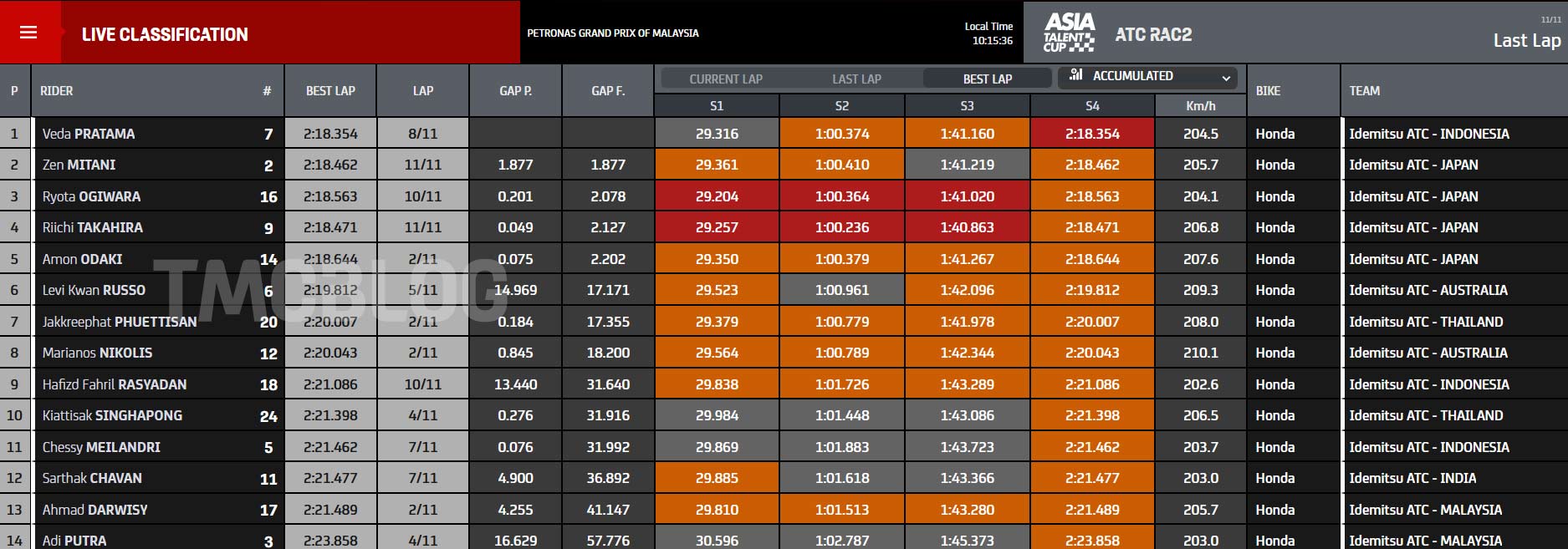 - Lap 11 Veda Ega Pratama memimpin 2,2 detik di Lap terakhir ini dari odaki