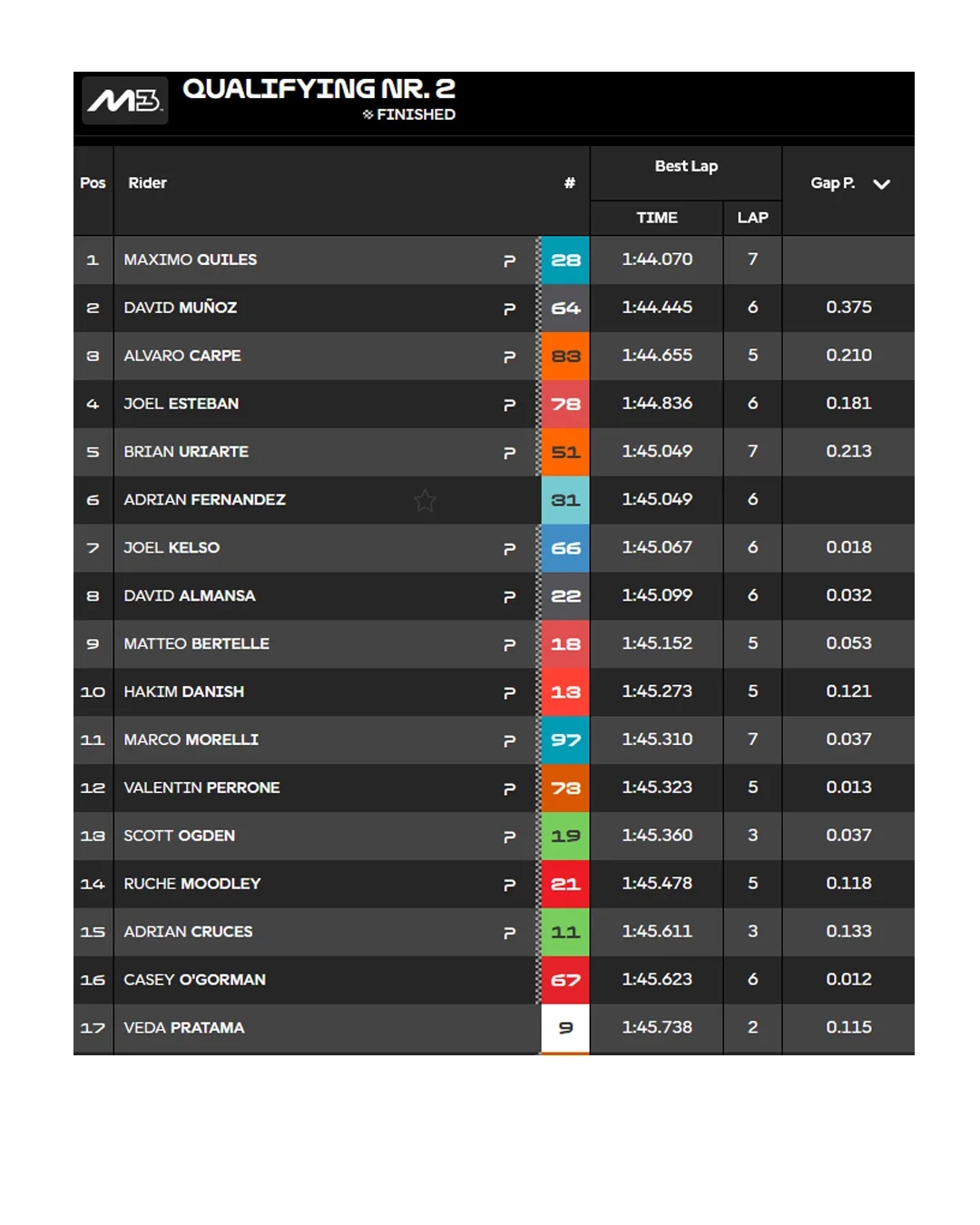 Dan akhirnnya Quiles Raih Pole Position Moto3 Jerez 2026.Pebalap Indonesia Veda Ega Pratama meraih Posisi 17 pada sesi Kualifikasi ini yang merupakan posisi startnya pada Race esok Ahad.