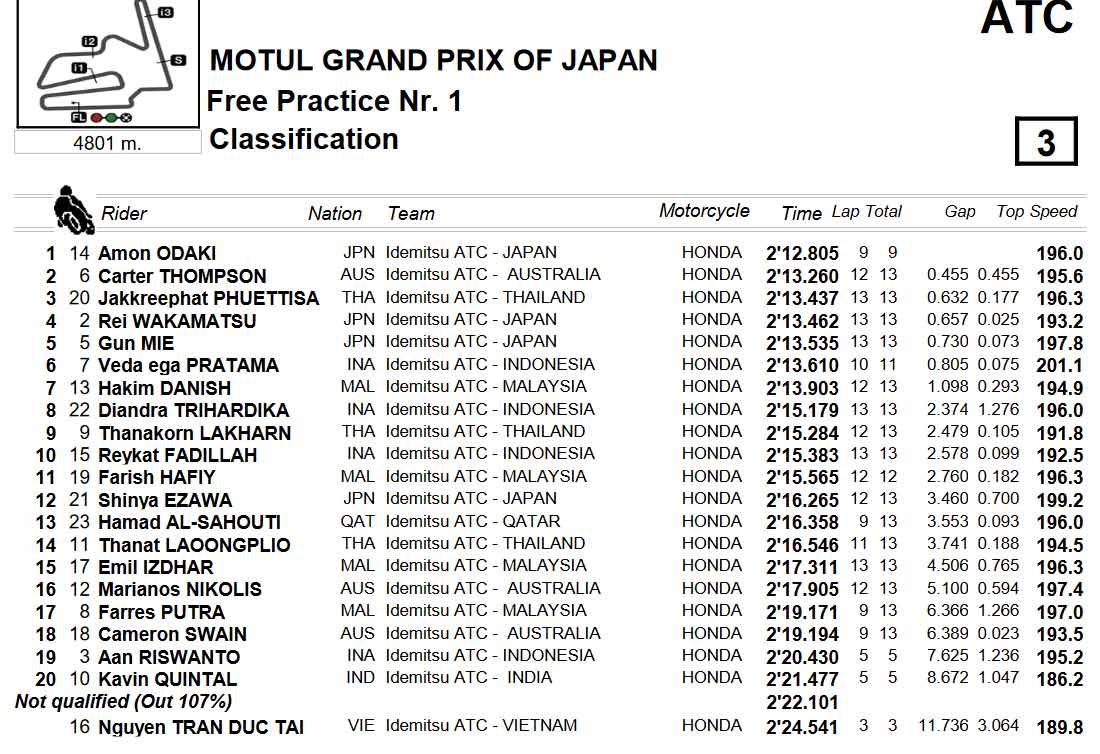 Race 1 ATC Motegi 2022 akan diadakan esok Sabtu jam 14:30 WIB dan Race 2 hadir ahad Jam 7 Pagi.