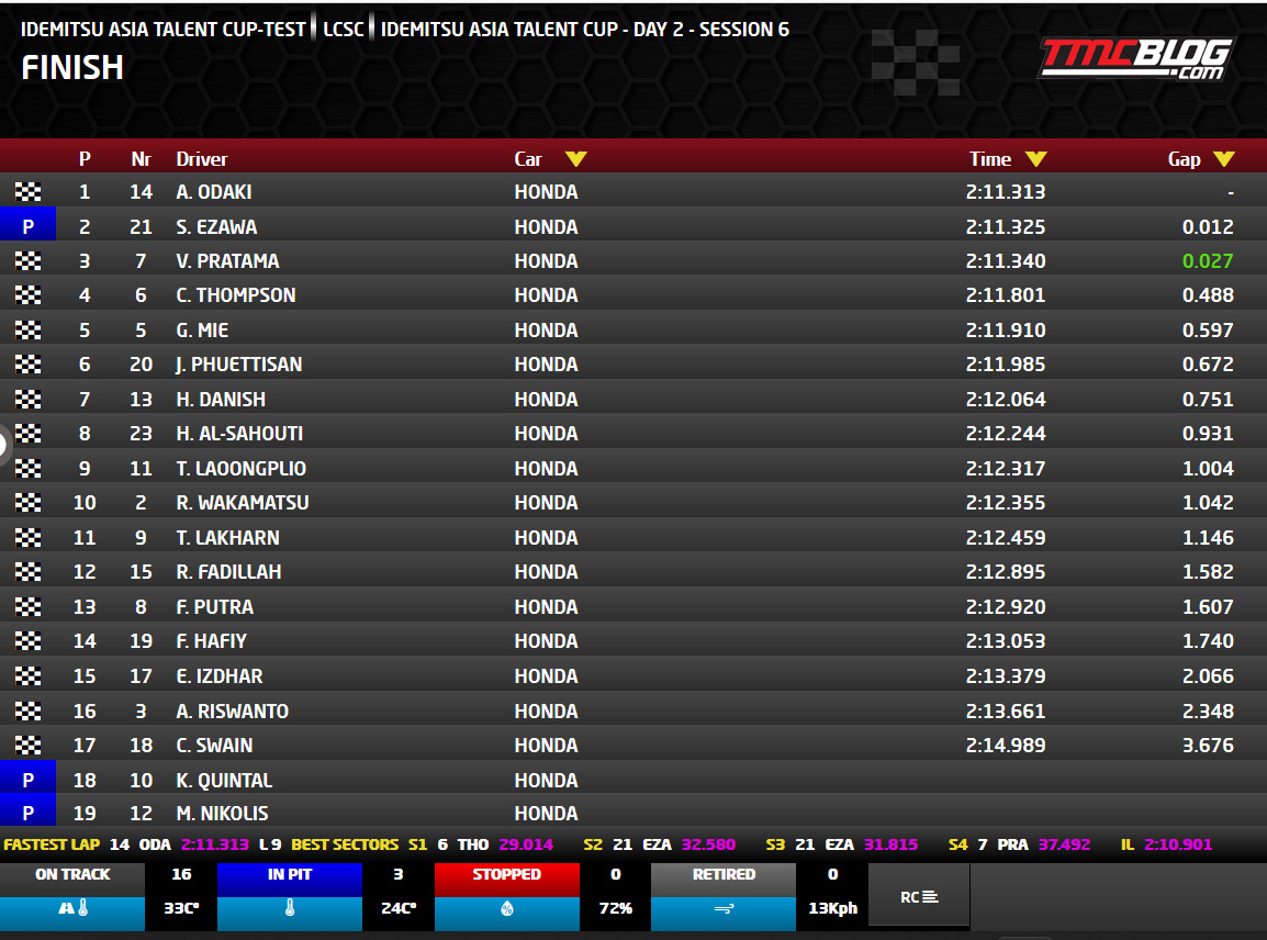 Veda Ega sendiri yang selalu hadir di Posisi Top 5 tercepat Begitu Sesi sesi latihan bebas hanya finish di P13. Dalam Sesi Simulasi ini Veda tercatat berhasil menorehkan Laptime tercepat kedua di Dasar Odaki yang mengartikan bahwa kekuatan Anak dari Pembalap Sudharmono ( Momon) ini sementara mungkin Eksis di Time-attack. Mungkin tinggal diasah soal Fighting strategy dan Fight spirit, dan tentunya Race Pace . .