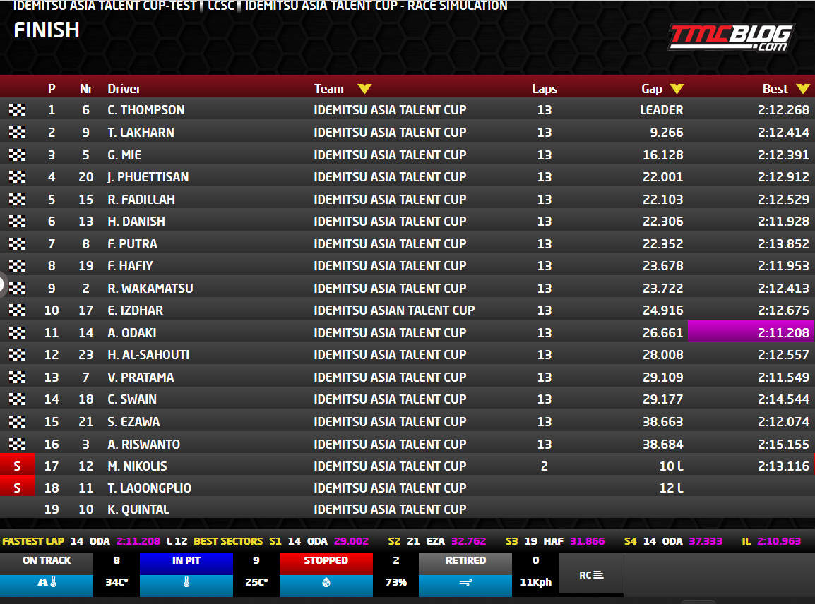 Pada pertengahan hari kedua ini Juga Para pembalap ATC ini juga memperoleh kesempatan hadir dalam Simulasi Balapan selama 13 lap di Sirkuit Lusail. Dan pada Simulasi tersebut terlihat 3 pembalap terdepan finisher adalah pembalap yang sudah Mempunyai pengalaman Membalap ATC selama Satu Musim sebelumnya Yakni Carter Thompson, Tachakorn Lakharn dari Thailand dan Gun Mie dari Jepang. Sementara pembalap tercepat Indonesia finish di P5 atas nama Reykat fadillah.