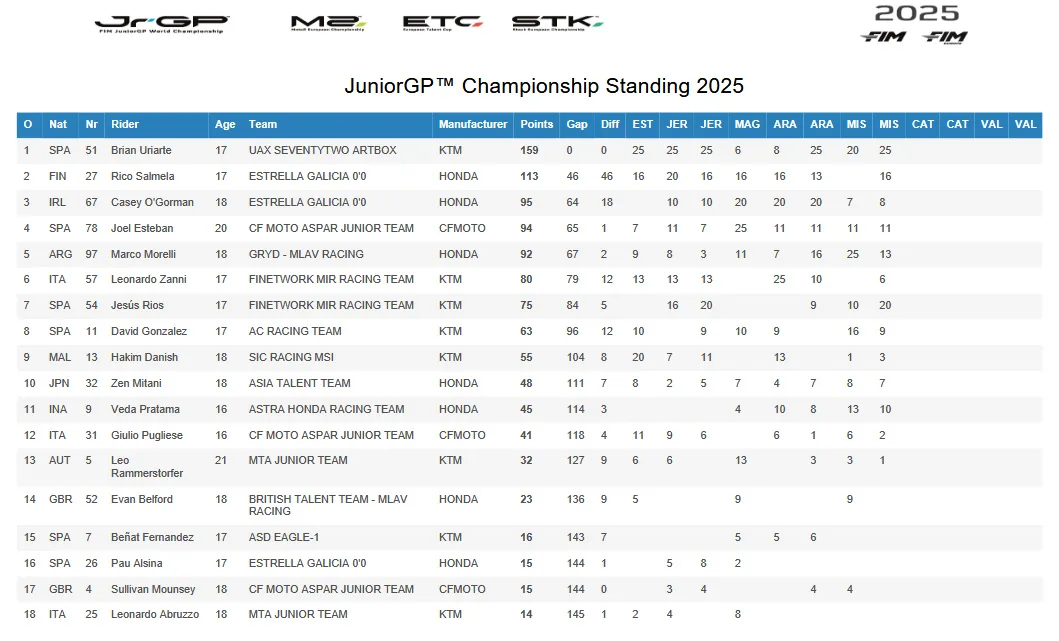 Pasca Race 2 secara Biasa Veda meraih 23 poin dan menjadikan Misano jadi seri terbaik so-far Demi Veda di musim JuniorGP 2025 ini.