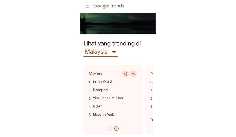 Menariknya, Sinema horor Indonesia yakni Vina Sebelum 7 Hari menjadi salah satu yang paling dicari masyarakat Malaysia di Google. Sinema karya Anggy Umbara itu menempati posisi ketiga bergabung dengan Inside Out 2, Deadpool, dan Madame Web