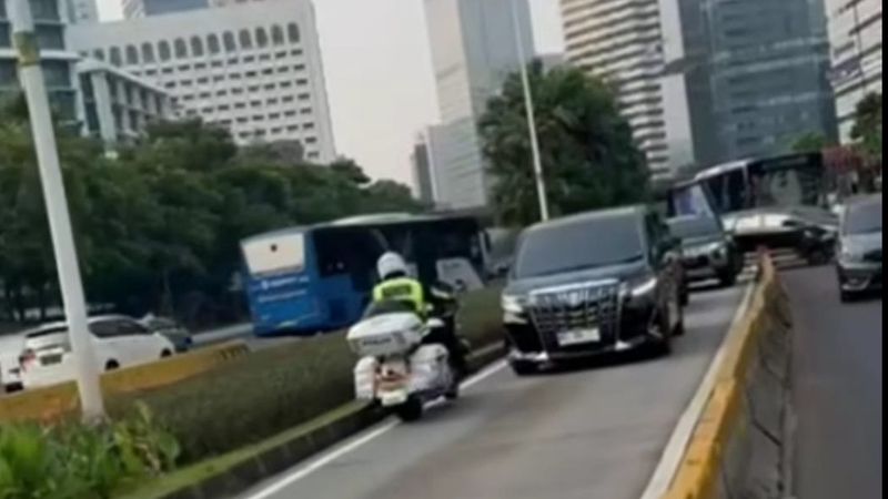 Dilihat di akun Instagram @koalisipejalankaki, ada motor patwal yang melaju balik arah. Di depan patwal itu ada mobil pelat RI 24 yang melaju pelan.