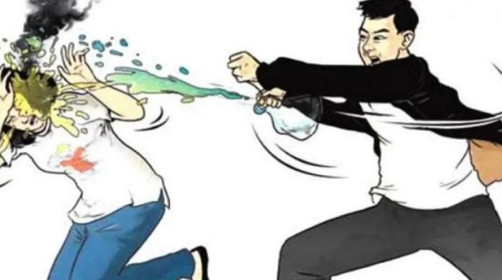 Pelaku Lampau menyiram air keras ke tubuh korban. Setelah melakukan aksinya, pelaku kabur.