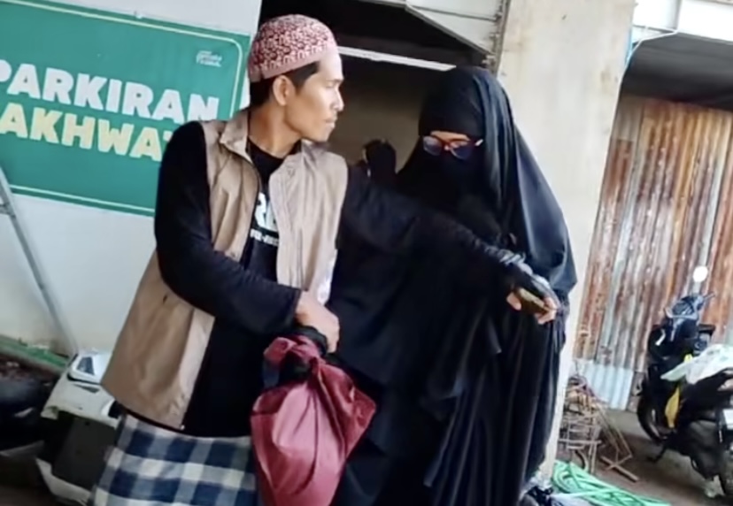 Perbuatan pelaku ini kemudian viral di media sosial. Dalam rekaman video yang beredar terlihat pelaku mengenakan pakain cadar bak seorang jemaah perempuan atau ukhti.