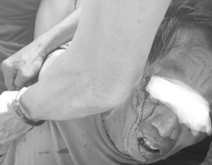 Nampak, pria tersebut babak belur, bercak darah sudah memenuhi muka pria tersebut.