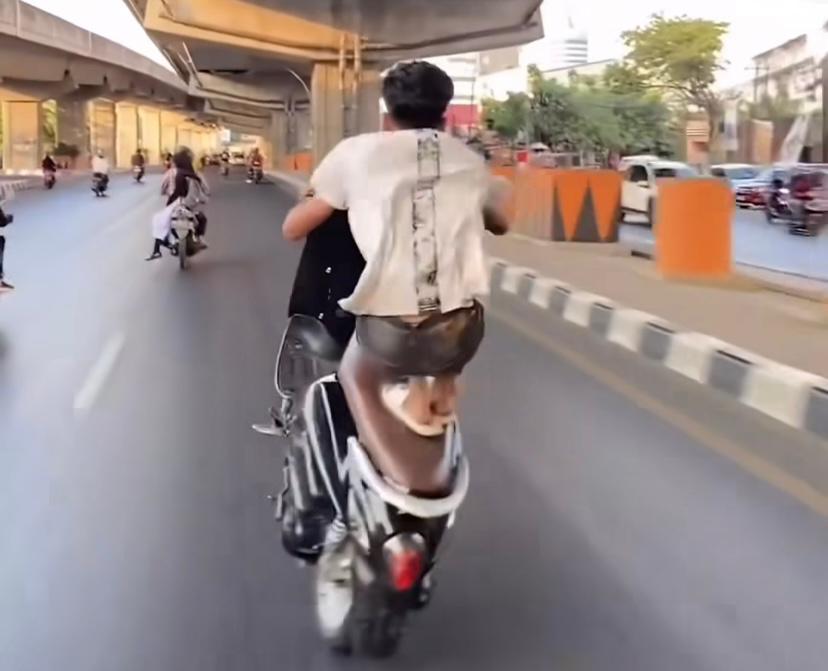 Dalam video tersebut, nampak pengendara motor yang diduga Lagi berusia belasan tahun itu tengah mengangkat ban depan motornya atau freestyle di tengah jalan.