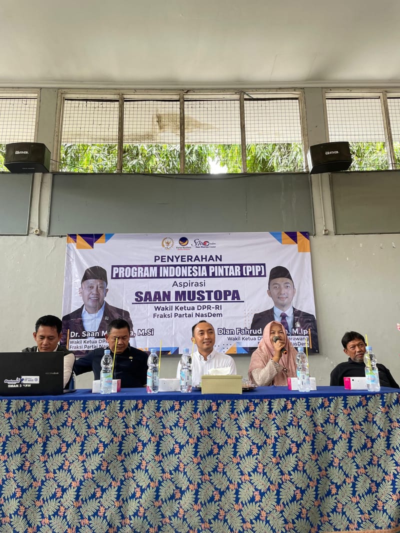 SEBANYAK 255 siswa-siswi SMA Negeri 3 Karawang dan SMK 2 Karawang, Jawa Barat, menerima beasiswa Program Indonesia Pintar (PIP) aspirasi dari Wakil Ketua DPR RI Saan Mustopa.