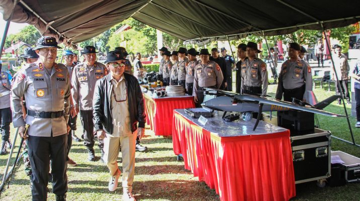 Gubernur Kalteng Agustiar Sabran (kanan) Berbarengan Kapolda Kalteng Irjen Iwan Kurniawan (kiri) mengecek peralatan pemadam kebakaran Begitu Apel Siaga Kebakaran Hutan dan Lahan di Polda Kalimantan Tengah, Palangka Raya, Jumat (16/5/2025). Apel Kesiapsiagaan yang diikuti personel Polri, TNI, BPBD, pemadam kebakaran, Manggala Agni, dan instansi terkait tersebut Kepada meningkatkan kesiapsiagaan personel serta sarana prasarana dalam menghadapi potensi kebakaran hutan dan lahan Begitu musim kemarau. ANTARA FOTO/Auliya Rahman/sas