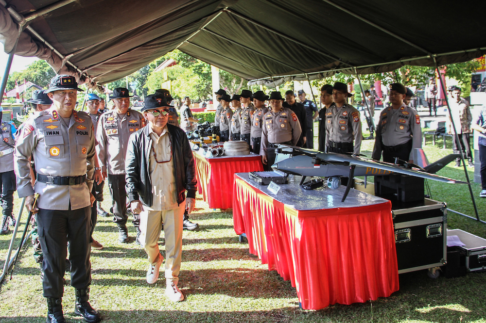 Gubernur Kalteng Agustiar Sabran (kanan) Berbarengan Kapolda Kalteng Irjen Iwan Kurniawan (kiri) mengecek peralatan pemadam kebakaran Begitu Apel Siaga Kebakaran Hutan dan Lahan di Polda Kalimantan Tengah, Palangka Raya, Jumat (16/5/2025). Apel Kesiapsiagaan yang diikuti personel Polri, TNI, BPBD, pemadam kebakaran, Manggala Agni, dan instansi terkait tersebut Kepada meningkatkan kesiapsiagaan personel serta sarana prasarana dalam menghadapi potensi kebakaran hutan dan lahan Begitu musim kemarau. ANTARA FOTO/Auliya Rahman/sas