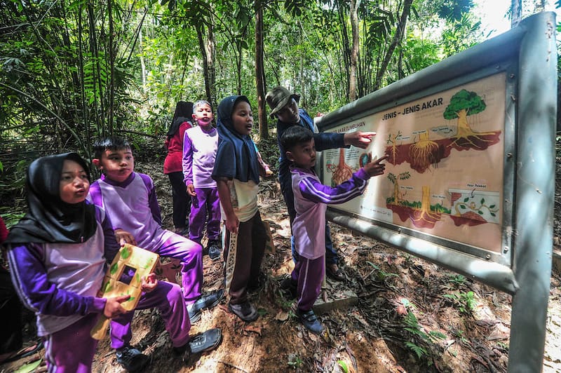 Pelajar SDN 012 Muara Bio mengikuti paket wisata edukasi lingkungan di Rumah Belajar Konservasi dan Ekowisata (RBKE) kawasan penyangga suaka margasatwa Bukit Rimbang Bukit Baling (SM BRBB) Desa Tanjung Belit, Kampar, Riau, Rabu (11/12/2024). Paket wisata yang dibuka atas inisiasi serta dampingan Indonesian Ecotourism Network (INDECON) tersebut bertujuan memberikan pemahaman tentang tanaman dan satwa sekaligus meningkatkan kesadaran pelajar akan pentingnya menjaga ekosistem sejak Pagi. ANTARA FOTO/Wahdi Septiawan/sas