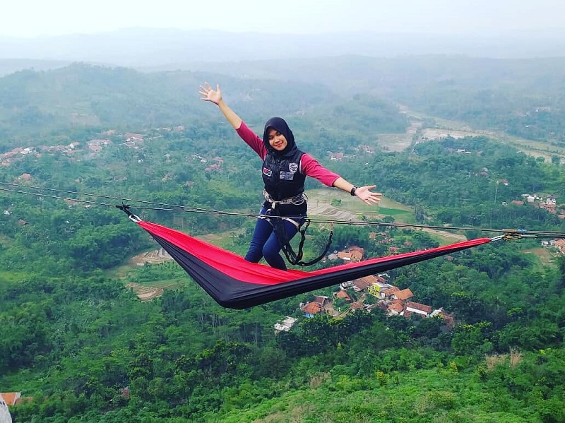 Demi yang paket 200 ribu, Engkau Pandai coba wahana Hammock di ketinggian 100 meteran dan Engkau wajib boking sebelumnya ya Gaaees.