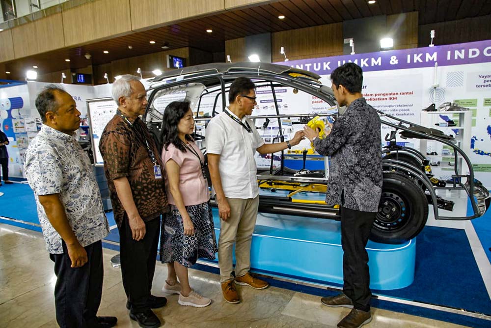 Ketua Pengurus Yayasan Astra – Yayasan Dharma Bhakti Astra (YDBA), Rahmat Samulo (keempat kiri) didampingi Pemilik Industri Kecil Menengah (IKM) PT Besq Sarana Langgeng binaan YDBA, Imron Hanafi (kiri), Advisor Yayasan Astra YDBA, Tonny Sumartono (kedua kiri), Sekretaris Pengurus Yayasan Astra YDBA, Ema Poedjiwati Prasetio (ketiga kiri) menyimak penjelasan dari Second Generation PT Noerhayat Berkah Sejahtera, Muhammad Orlando (kanan) tentang produk manufaktur kendaraan di Pameran Gaikindo Indonesia International Auto Show (GIIAS) 2025, Tangerang, Banten, Jumat (25/7/2025). Tahun ini Astra melalui Yayasan Astra – Yayasan Dharma Bhakti Astra hadir kembali di Pameran Gaikindo Indonesia International Auto Show (GIIAS) 2025 dengan mengusung tema “Yayasan Astra Demi UMKM dan IKM Indonesia”. Berbagai produk UMKM dan IKM ditampilkan dalam pameran ini, mulai dari sektor manufaktur, bengkel roda empat, kerajinan dan Masakan serta pertanian bernilai tambah. Di sektor manufaktur sendiri, Yayasan Astra mendukung penguatan rantai pasok IKM Demi masuk dalam industri besar. Tercatat pada tahun 2024, terdapat nilai transaksi rantai pasok sebesar Rp 4.5 Triliun ke Grup Astra yang melibatkan binaan Yayasan Astra. MI/Usman Iskandar